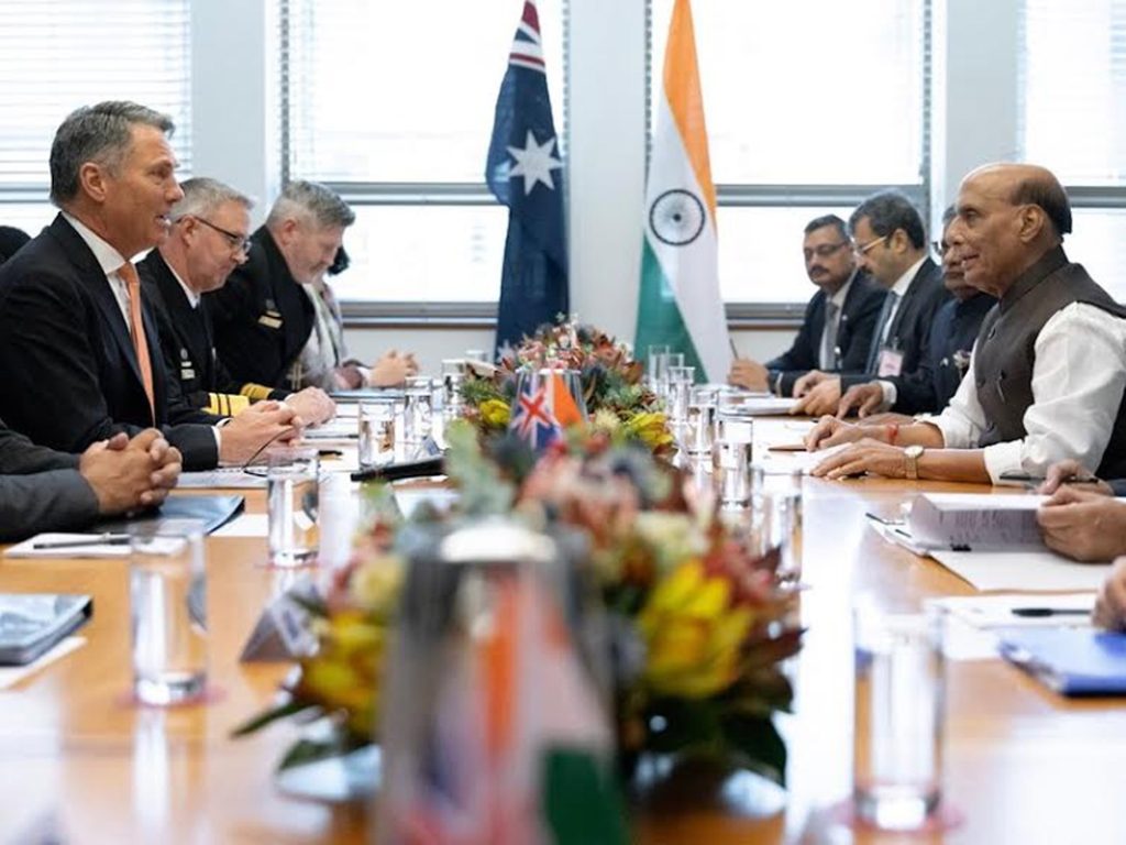 نئی دہلی //اس بات پر ایک بار پھر زور دیتے ہوئے کہ دہشت گردی اور بات چیت ایک ساتھ نہیں چل سکتی ہے وزیر دفاع راجناتھ سنگھ نے عالمی برادری پر بھی زور دیا کہ وہ ہر قسم کی دہشت گردی کے خلاف اکٹھے ہو جائیں۔نما ہندہ کے مطابق وزیر دفاع راجناتھ سنگھ نے آسٹریلیا کے اپنے دو روزہ سرکاری دورے کے دوران 9 اکتوبر 2025 کو کینبرا میں آسٹریلیا کے نائب وزیر اعظم اور وزیر دفاع رچرڈ مارلس کے ساتھ وسیع پیمانے پر دو طرفہ ملاقات کی۔ یہ ملاقات بھارت آسٹریلیا جامع اسٹریٹجک شراکت داری کے پانچ سال مکمل ہونے کے موقع پر ہوئی، جس میں دونوں فریقوں نے فوجی مشقوں، سمندری سلامتی، دفاعی صنعت کے تعاون اور سائنس و ٹیکنالوجی میں مشترکہ تحقیق سمیت وسیع پیمانے پر دفاعی تعاون کو مزید مستحکم کرنے کیلئے اپنے مشترکہ عزم کا اعادہ کیا۔میٹنگ کے دوران راجناتھ سنگھ نے دہشت گردی کے خطرے کے حوالے سے ہندوستان کے موقف کا اعادہ کیا کہ دہشت گردی اور بات چیت ایک ساتھ نہیں چل سکتی، دہشت گردی اور تجارت ایک ساتھ نہیں چل سکتی اور پانی اور خون ایک ساتھ نہیں بہہ سکتے۔ انہوں نے بین الاقوامی برادری پر زور دیا کہ وہ ہر قسم کی دہشت گردی کے خلاف متحد ہو کر کام کرے۔آسٹریلیا کے وزیر اعظم انتھونی البانیز نے مختصر طور پر میٹنگ میں شرکت کی اور راجناتھ سنگھ کا پرتپاک استقبال کیا۔ وزیر دفاع نے وزیر اعظم نریندر مودی کی طرف سے مبارکباد بھی پیش کی اورجناب البانیز کو مئی 2025 میں ان کی زبردست انتخابی جیت پر مبارکباد دی۔ آسٹریلیا کے وزیر اعظم انتھونی البانی نے ہندوستان کی قابل ذکر اقتصادی پیش رفت کی تعریف کی، خاص طور پر دفاع، سائبر سیکورٹی اور آئی ٹی کے شعبوں میں۔ انہوں نے لاکھوں لوگوں کو غربت سے نکالنے میں ہندوستان کی کامیابی کو بھی سراہا۔میٹنگ کے بعد ایک مشترکہ بیان جاری کیا گیا، جس میں بڑھتی ہوئی گہرائی اور باہمی اعتماد پر زور دیا گیا جو کہ ہندوستان آسٹریلیا دفاعی شراکت داری کی وضاحت کرتا ہے۔