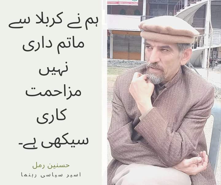 حسنین رمل کی رہائی کے لیے ہنزہ پریس کلب کے باہر احتجاجی مظاہرہ کیا گیا،واضح رہے کہ انکو علاقائی حقوق مانگنے کے اور قابض پاکستانی فوج کے خلاف نعرہ لگانے کے جرم میں گرفتار کیا گیا تھا۔