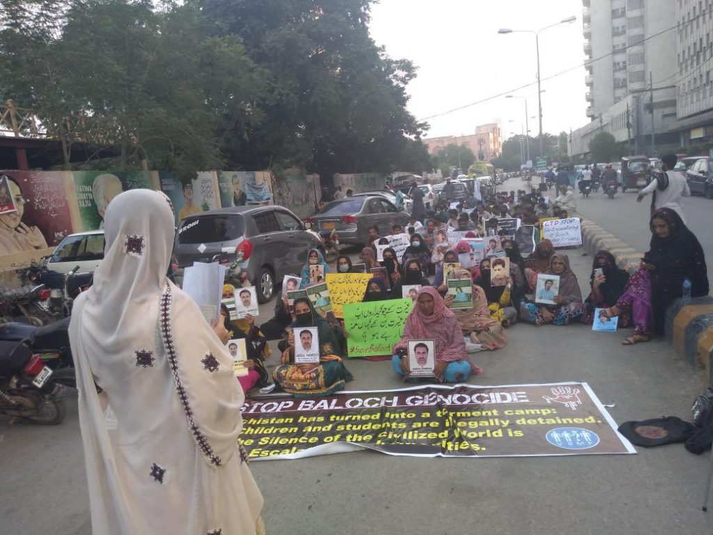 بلوچستان کے ضلع بولان کے مختلف علاقوں میں فوجی آپریشن،خواتین اور بچوں کو غیر قانونی حراست میں رکھنے، بلوچ طلباء کی بڑھتی ہوئی جبری گمشدگیوں اور مقدمات پہ آج وائس فار بلوچ مسنگ پرسنز اور بلوچ یکجہتی کمیٹی نے کراچی پریس کلب کے سامنے ایک احتجاجی مظاہرے کا انعقاد کیا۔